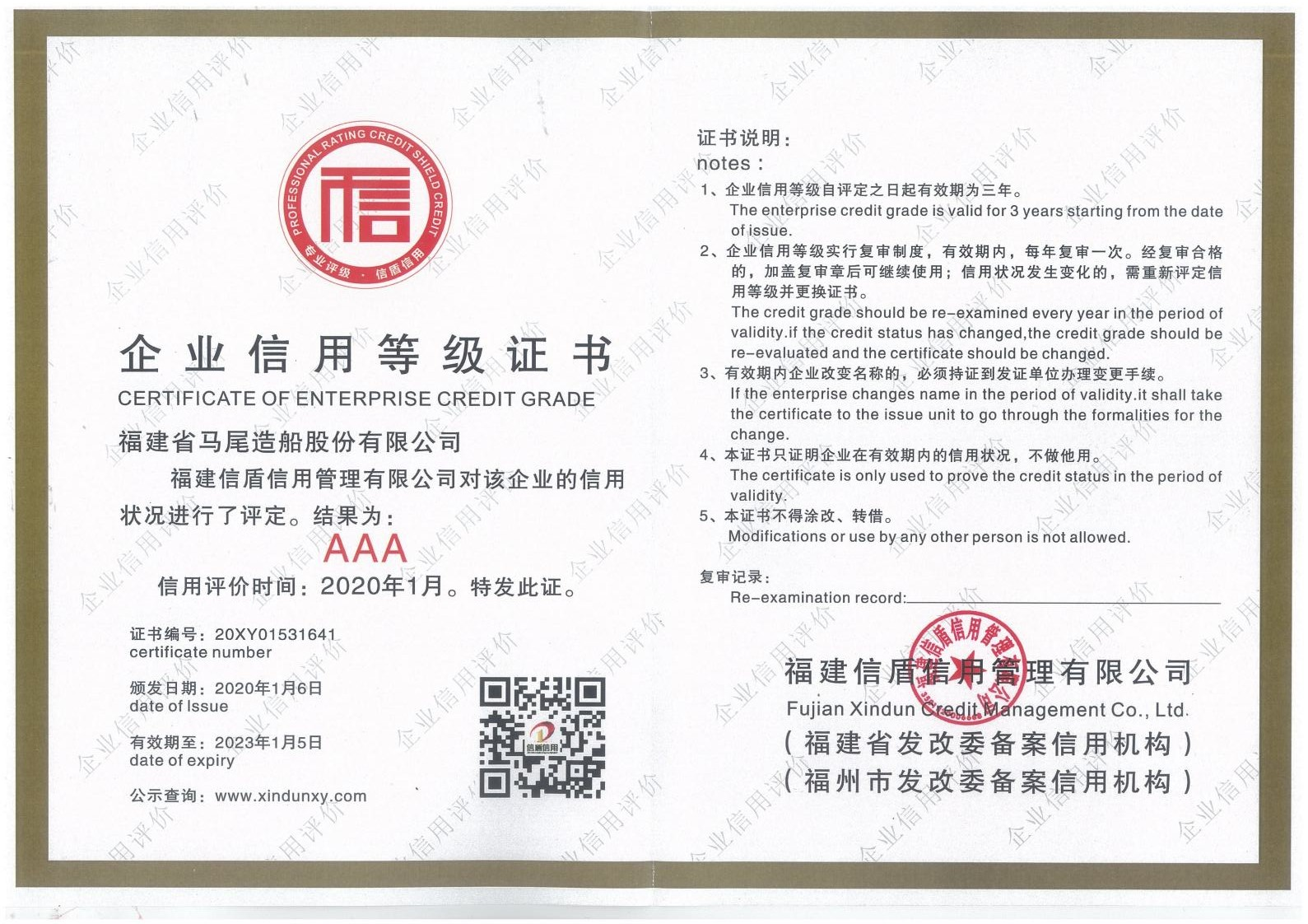 2020-2023企業(yè)信用等級(jí)證書(shū)