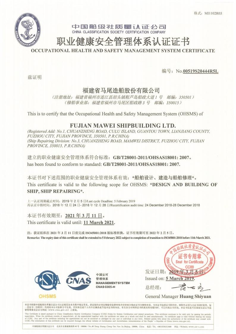 職業(yè)健康安全管理體系認(rèn)證證書(shū)